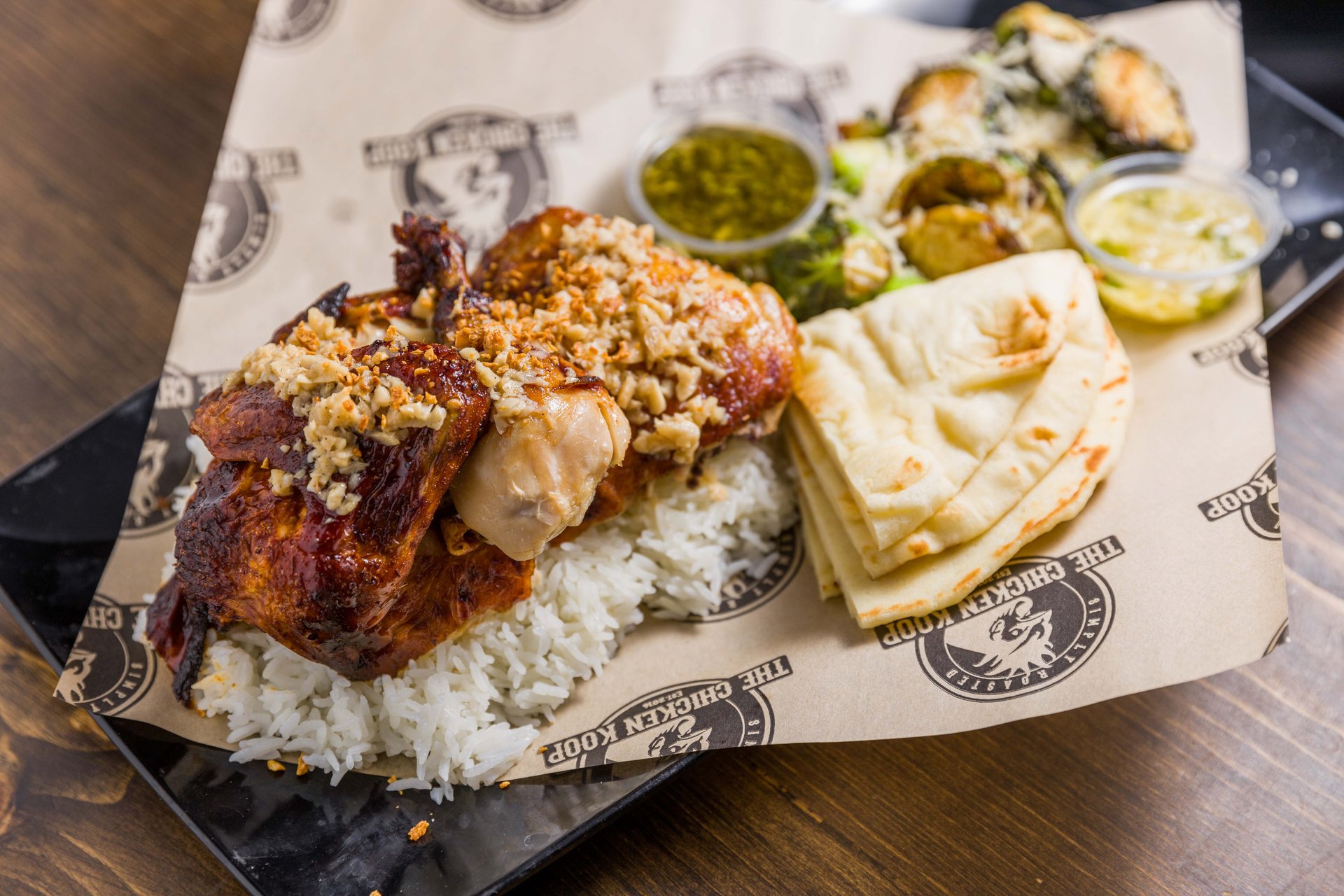 Up to 12 cash back Yellow Rice White Sauce and Harissa Style Red Sauce Pulled Rotisserie Chicken Halal Mix Shredded Romaine Diced Tomatoes White Onion Cucumber Pita. A fusion of cultures culminating in an ultimate chicken and rice dish. 11am 930pm Today Add Review.